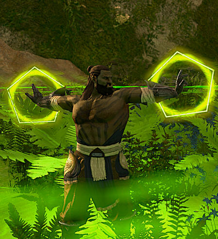 Hailing from the slums of Orsinium, still slowly rising from its ashes, Garmokh’s tale began with humble beginnings. Born to a mercenary father and an artisanal tradeswoman mother, with nary more than a few coins to scratch together at any time, he quickly learned the essential acts of survival. As the early years passed by, Garm found himself a natural at smithing, much to the credit of his heritage, an art that he eagerly worked to hone. But another talent emerged in him – his raw ability for magickal manipulation. It was then, in his early adulthood, that things became quite complicated. A traveler blew into the city from a faraway land, stopping to rest for a time. Mysterious, and malevolent, the stranger took a keen interest in Garmokh’s unrefined abilities, insisting upon becoming his mentor. Under the stranger’s tutelage, Garm’s practice flourished, particularly his capability with magics of shadow and the Green. He found himself a master of infusing his blacksmithed crafts with enchantments, gaining him notoriety in the region. However, things quickly took a dark turn; ever paranoid and deceitful, his strange mentor felt Garmokh had grown too formidable, and devised a scheme to take him out. Framing him for mass murder, his mentor murdered several innocent townsfolk using some of Garm’s own crafted arms. When confronted by the Orsimer, the stranger laid a curse upon him, one that would erode his very soul, leaving him naught but a lifeless husk. Forced to flee his homeland, Garmokh retreated into the wilds, beginning a life of solitude, during which he worked tirelessly to stave off the curse – and plot his revenge against his former mentor, the Vagabond. Continuing to nurture his craft, he now seeks power in others to aid him on his journey.